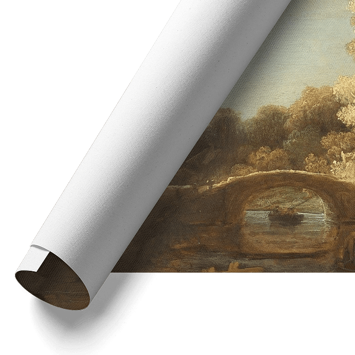 Buy Rembrandt van Rijn. Landscape with stone bridge as a reproduction on canvas, ArtFrame, poster and wallpaper, printed on demand in high quality.