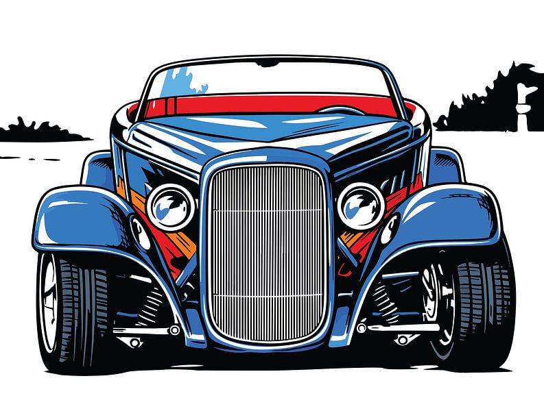 Buy Retro Hot Rod Front Pop Art Portrait by Ramy Salah Hefny on canvas, ArtFrame, poster and wallpaper, printed on demand in high quality.