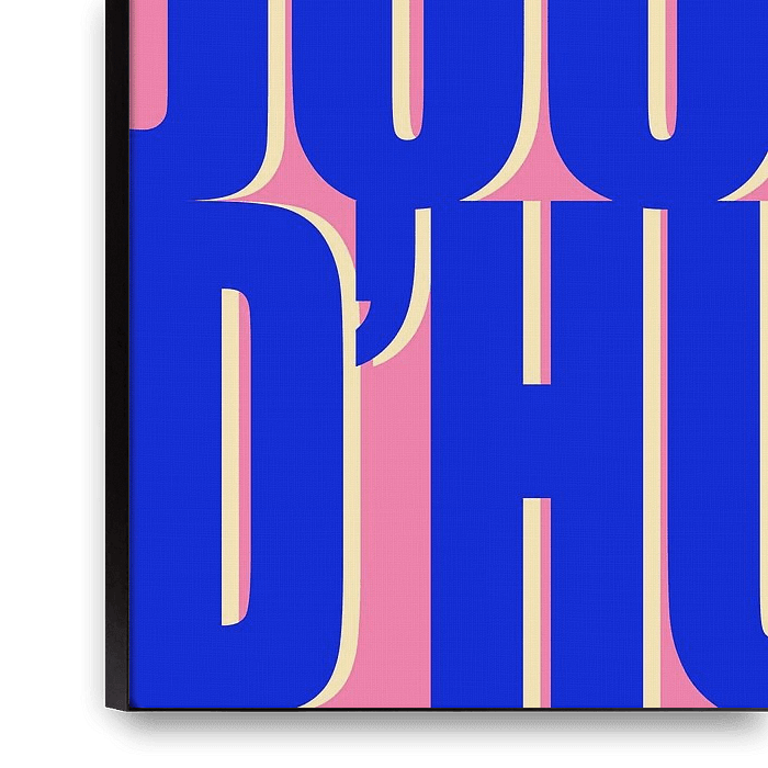Buy this Popart artwork Retro Quote - Aujourd'hui in pink and cobalt blue by Atelier Willem on canvas, ArtFrame, poster and wallpaper, printed on demand in high quality.