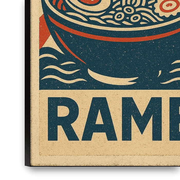 Buy this still life Retro Ramen Poster – Bold Japanese Noodle Art Print by Travel Shop on canvas, ArtFrame, poster and wallpaper, printed on demand in high quality