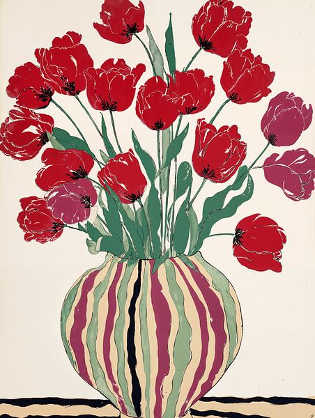 About ‘Retro Red Flowers in Vase’ by IamHome Studio