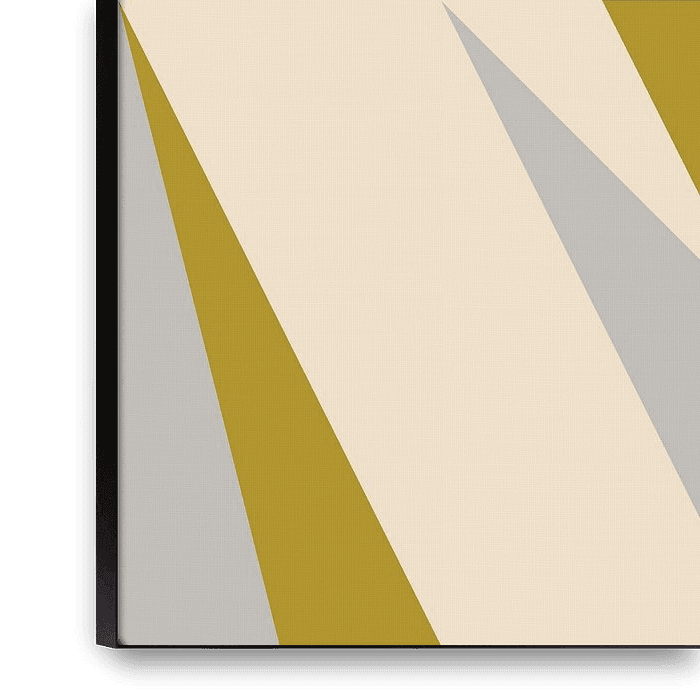 Buy this abstract artwork Retro geometry with triangles in Bauhaus style in mustard yellow 3 by Dina Dankers on canvas, ArtFrame, poster and wallpaper, printed on demand in high quality.