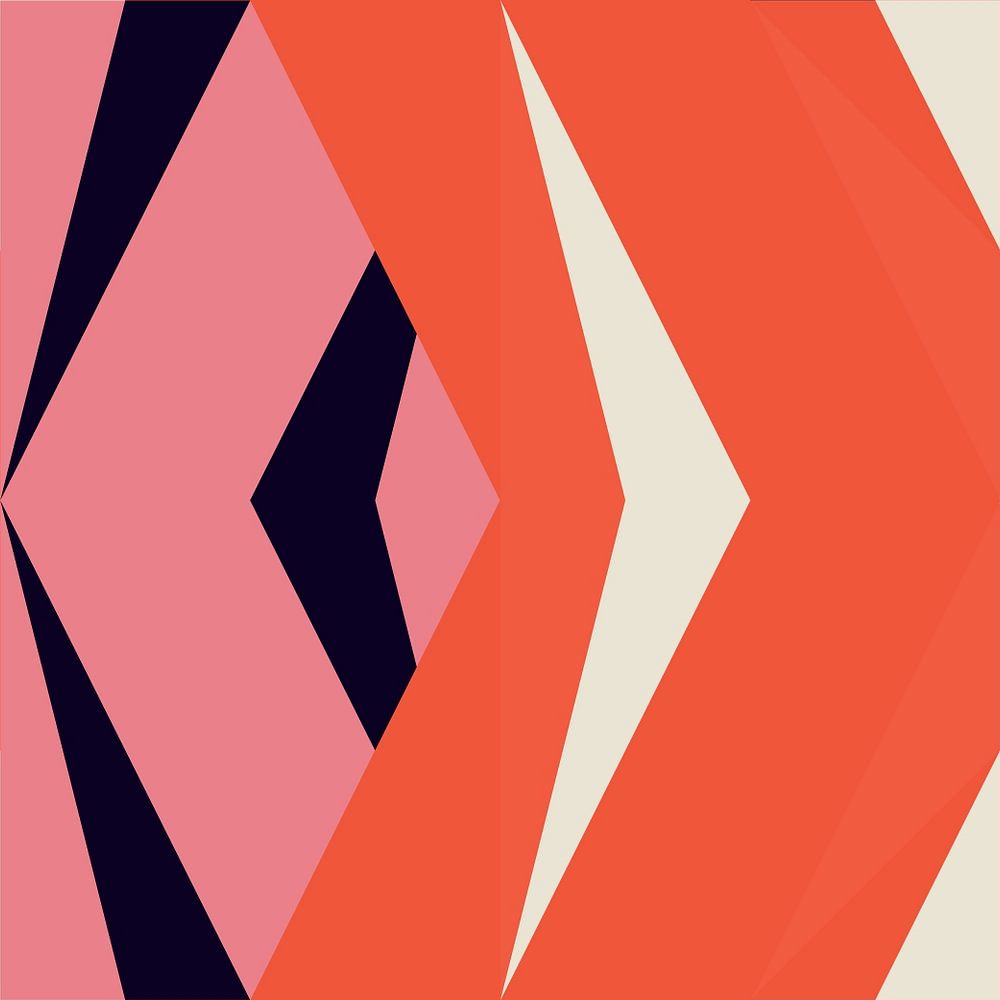 About "Retro geometry with triangles in Bauhaus style in orange, pink, black"