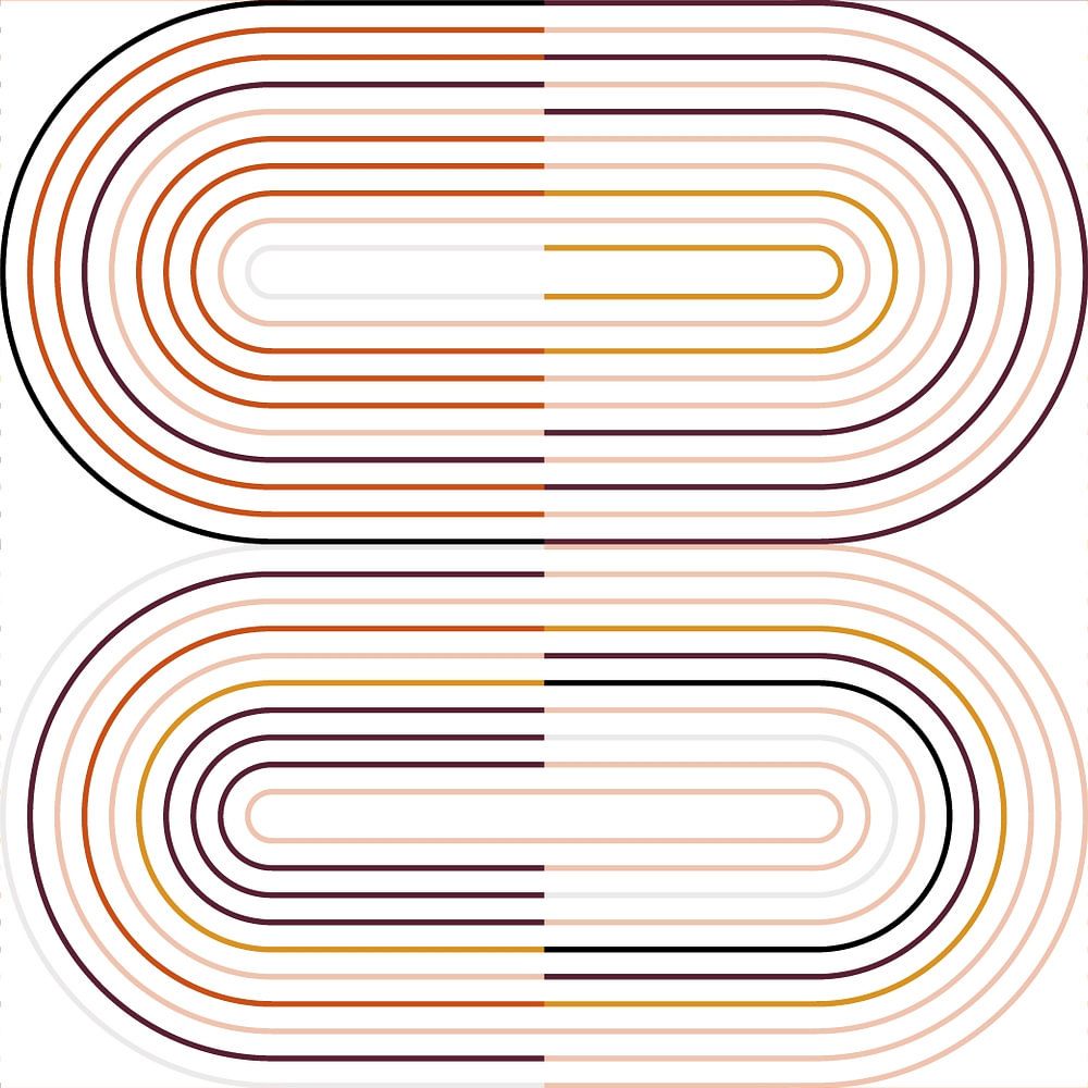 About "Retro industrial geometry with lines in pastel colors nr. 5 in yellow, red, black, yellow, beige"