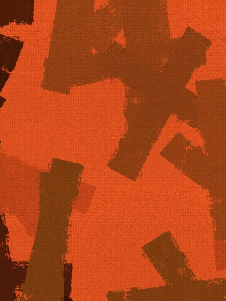 This abstract minimalist artwork focuses on expressive brush strokes in brown, olive, camo green, and bright orange-terracotta. The palette brings a clear retro feeling: warm, slightly nostalgic colors that echo 70s design, yet still feel modern and vivid. The brush strokes stay simple and bold, without complex shapes, giving the piece…