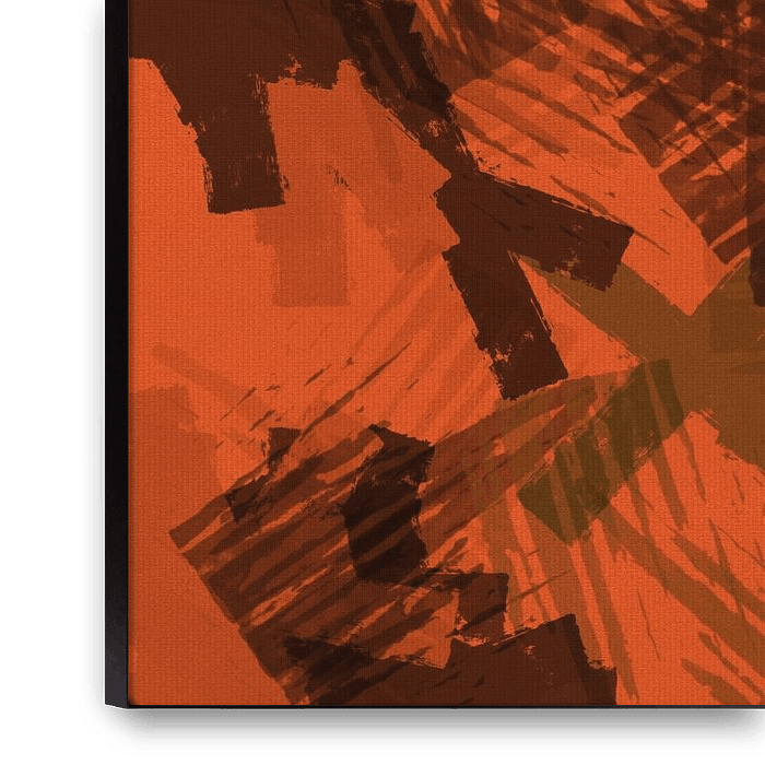 This abstract minimalist artwork focuses on expressive brush strokes in brown, olive, camo green, and bright orange-terracotta. The palette brings a clear retro feeling: warm, slightly nostalgic colors that echo 70s design, yet still feel modern and vivid. The brush strokes stay simple and bold, without complex shapes, giving the piece…