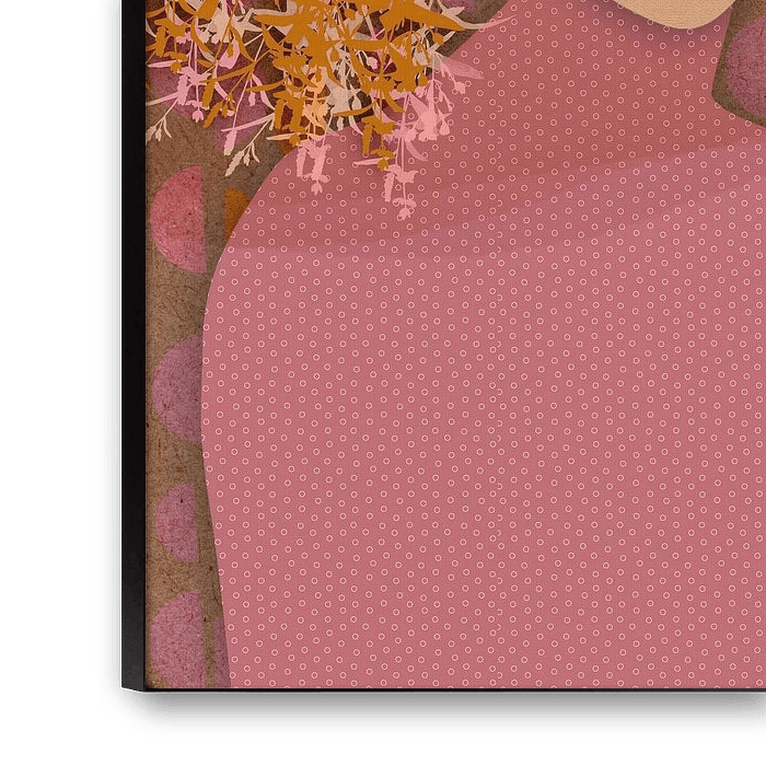 Buy this flower art Retro portrait of a woman in pastel pink, dark orange and brown by Dina Dankers on canvas, ArtFrame, poster and wallpaper, printed on demand in high quality.
