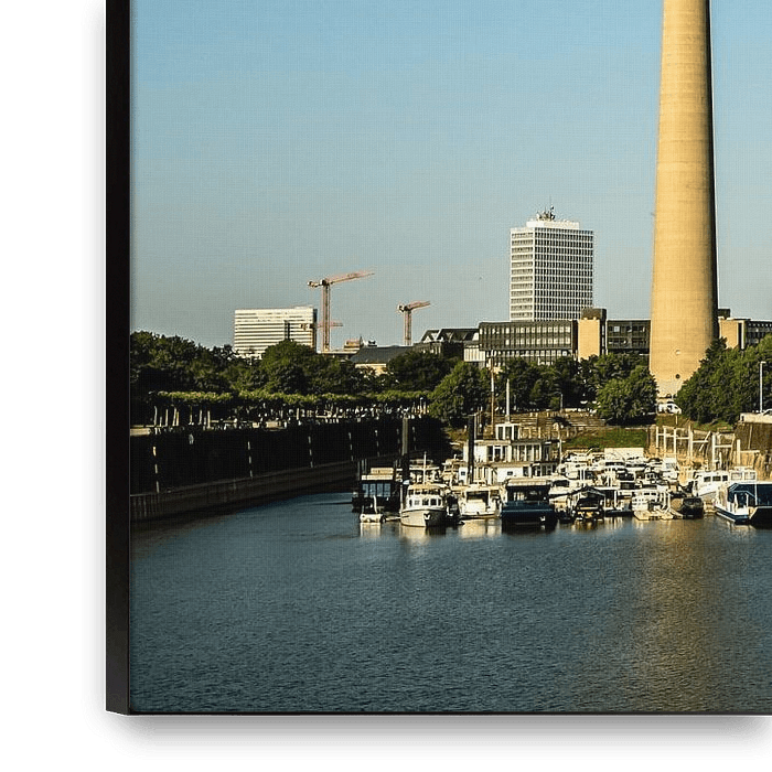 Buy the photo Rhine Tower and Gehry buildings in Dusseldorf Rhine by Dieter Walther on canvas, ArtFrame, poster and wallpaper, printed on demand in high quality.