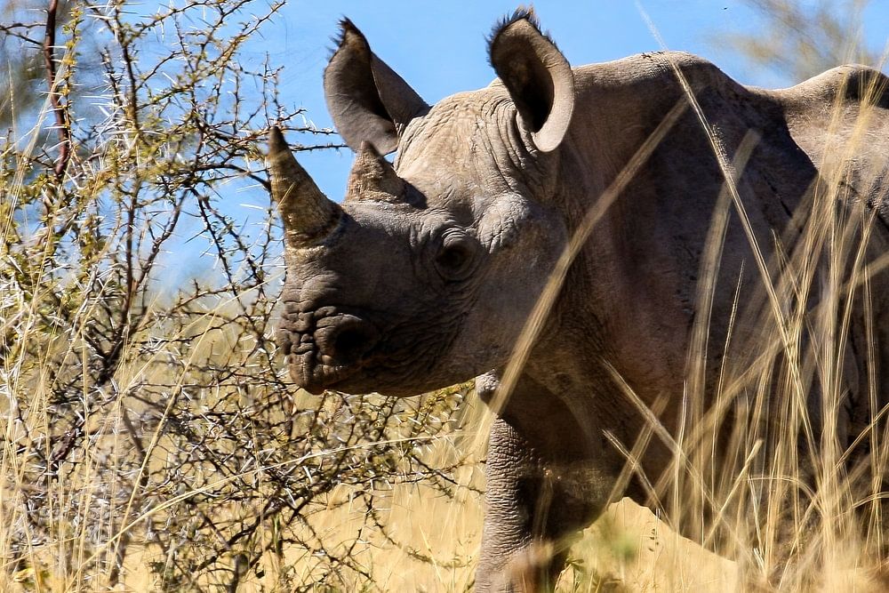 Buy the photo Rhino in the savannah in Namibia by Roland Brack on canvas, ArtFrame, poster and wallpaper, printed on demand in high quality.