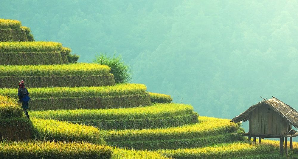 An atmospheric photo of rice fields in the morning in China, close to the Vietnamese border at Sa Pa.