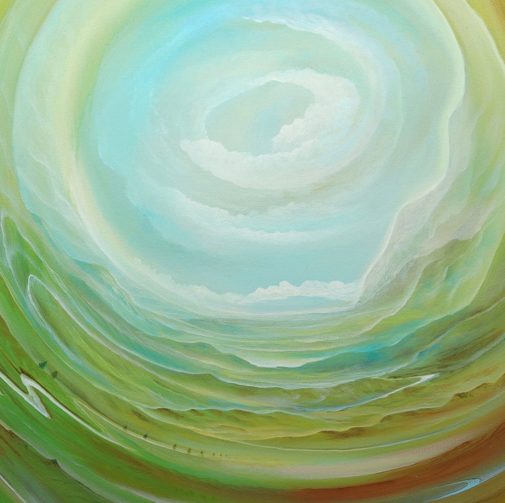 This painting impressively reveals the constant change in nature, which manifests itself through a lively flow and exchange of energy. The focus is on the spiral as a symbol of ceaseless movement, development and transformation.