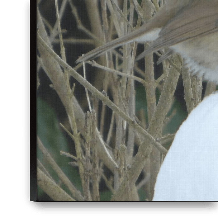 This robin keeps warm in the snow