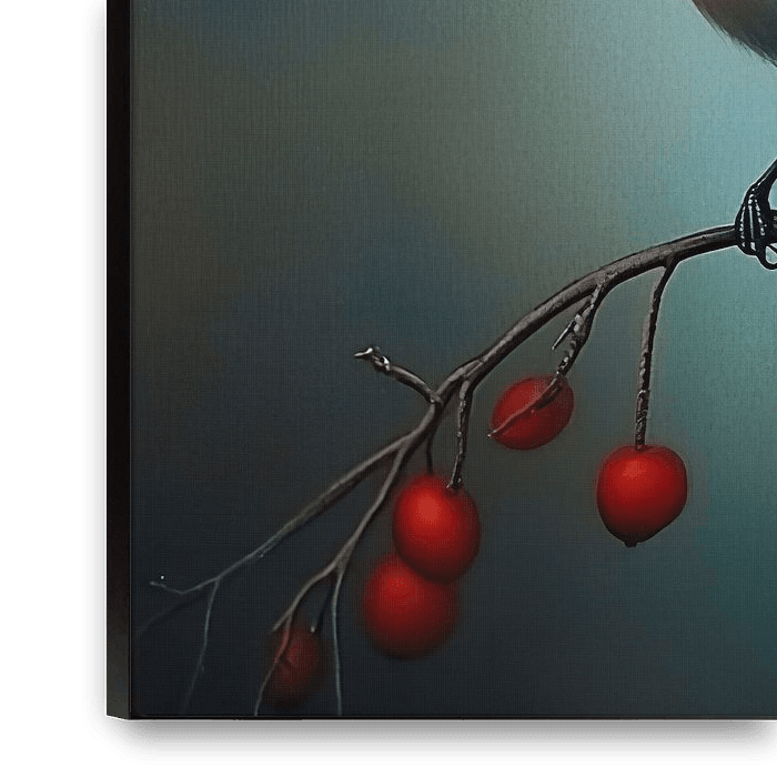 Buy this landscape artwork Robin on berry branch by Lauri Creates on canvas, ArtFrame, poster and wallpaper, printed on demand in high quality.