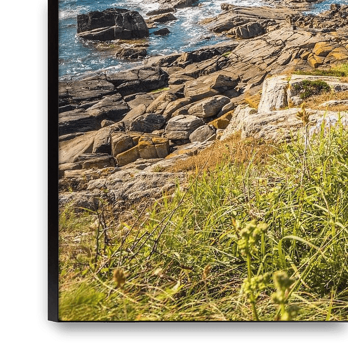 Buy this landscape artwork Rocky coast with daisies at Pointe de Bihit, Trébeurden, Brittany by Christian Müringer on canvas, ArtFrame, poster and wallpaper, printed on demand in high quality.