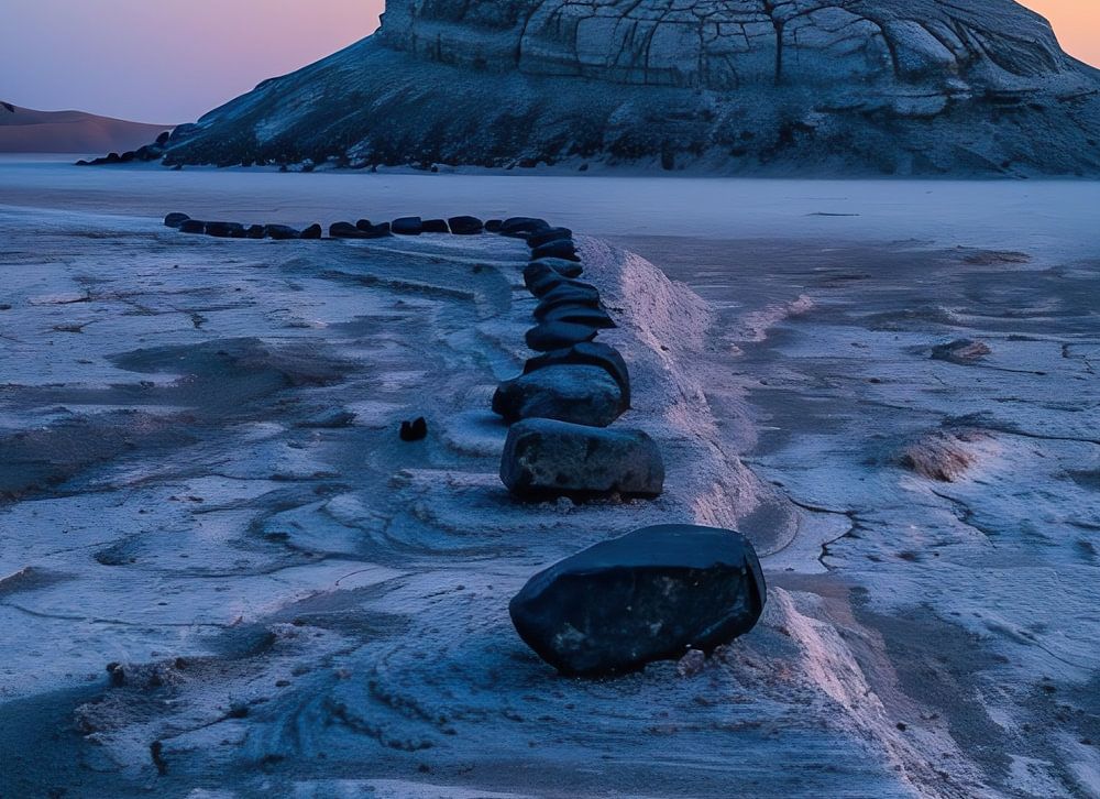 Buy this landscape artwork Rocky shore landscape in the last light by fernlichtsicht on canvas, ArtFrame, poster and wallpaper, printed on demand in high quality.