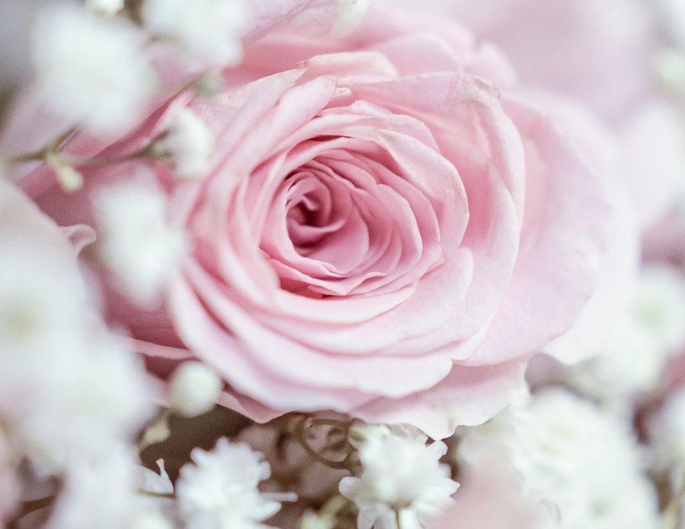 Buy this flower art Romantic pink roses with gypsophilia by Mariska Vereijken on canvas, ArtFrame, poster and wallpaper, printed on demand in high quality.