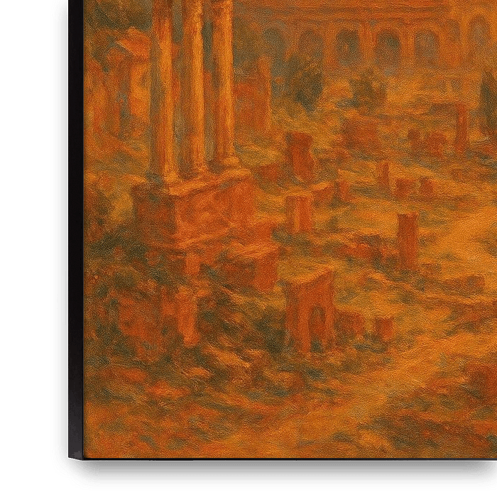 Rome at Sunset captures the ancient heart of the Eternal City beneath a radiant sky of amber and rose. The Colosseum, timeless and powerful, stands illuminated by the setting sun, while the Roman Forum stretches out in warm, earthy tones. Brushstrokes shimmer like the heat of history itself, evoking both grandeur and nostalgia. Inspired…