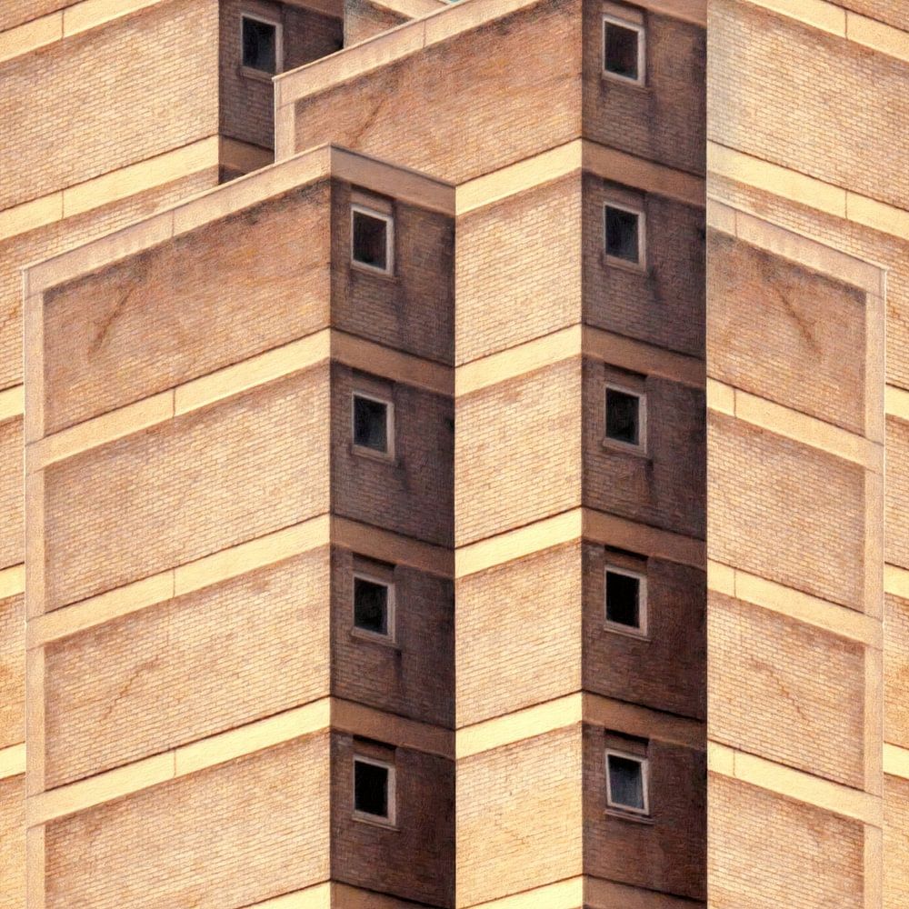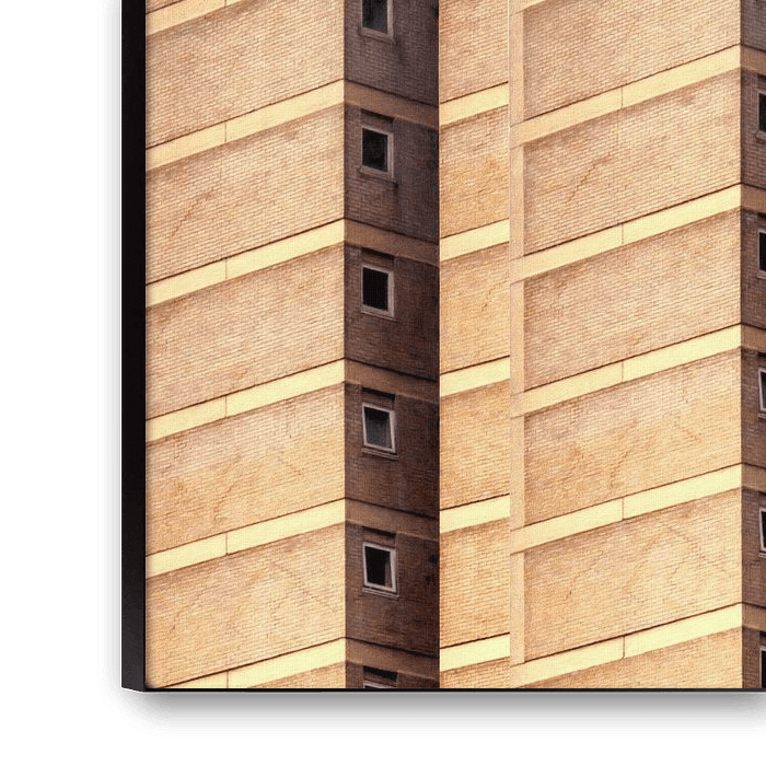 The clean laundry on the clothesline is a stark contrast to the monumental and repetitive architecture around it.