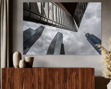 Rotterdam's 'Central District', with the characteristic tip of the new central station in the foreground and the high-rise towers of Delftse Poort and the Millennium Tower in the background.