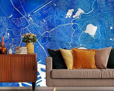This artistic map of Rotterdam is a unique wall decoration for residential and business interiors.