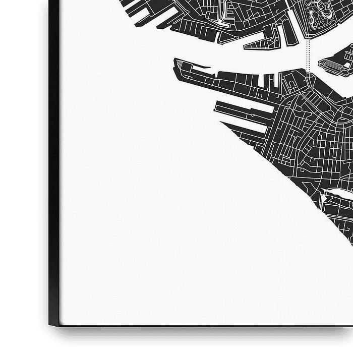 Hand illustrated city map of Rotterdam North and South in a black heart. This accurate city map is a handmade digital illustration and has a minimalistic and modern look.