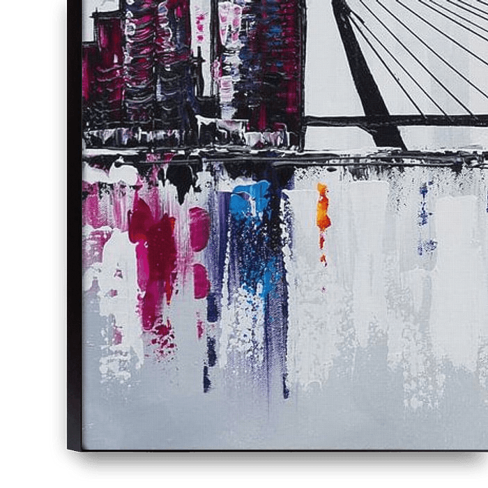 The Skyline of Rotterdam, including the famous Erasmus Bridge and Euromast. If your interior could use some colour then this painting is a great choice!
