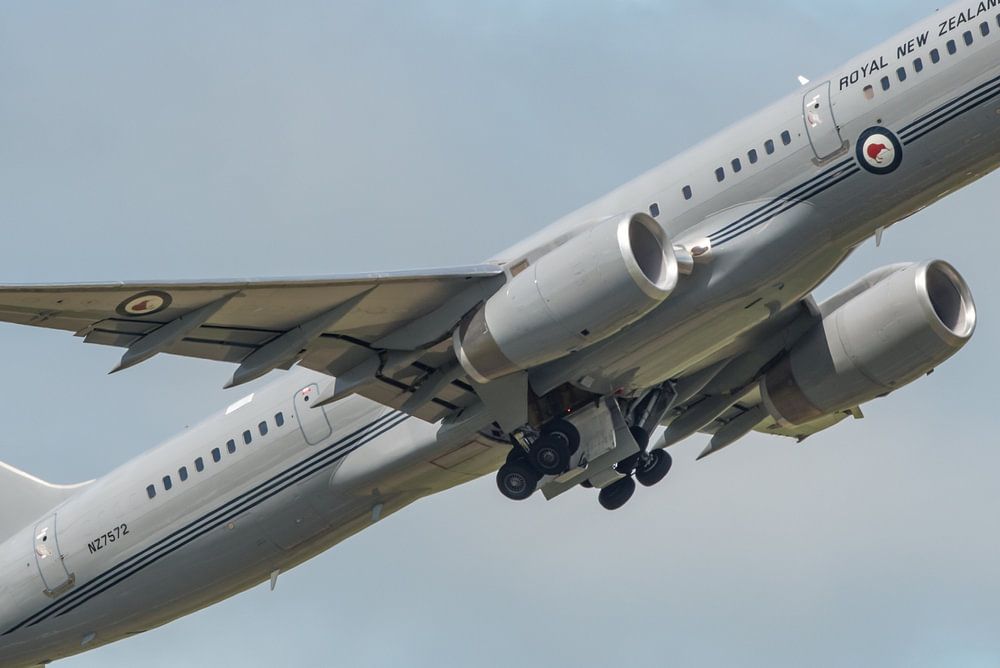 Royal New Zealand Air Force Boeing 757-200 (NZ7572) takes off from RNZAF Base Ohakea for a demonstration flight.
