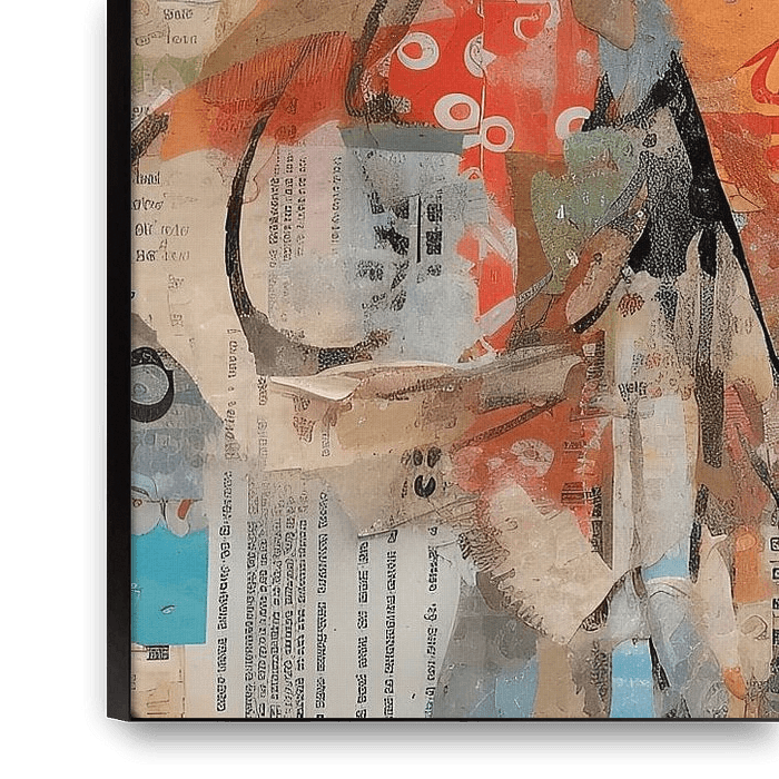 Ruby Portrait - abstract painting / mixed media art painted. Nice contrast between sophisticated portrait and raw collage/painting technique.