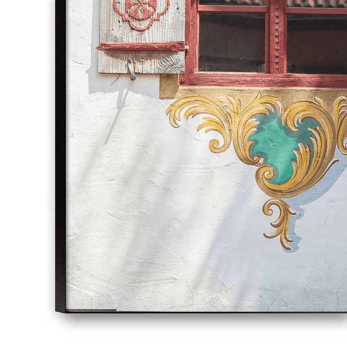 Lüftlmalerei on an old window, Ruhpolding, Chiemgau, Upper Bavaria, Bavaria, Germany
