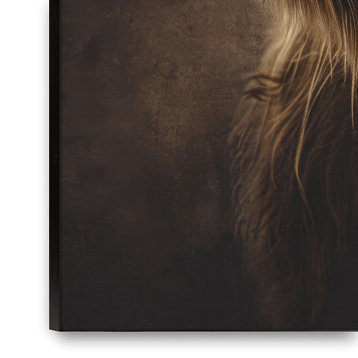 "Rustic Beauty" shows a Highland cattle in a moment of contemplation, captured against a timeless, textural background. The warm earth tones and impressive horns create a portrait of serenity and strength. Celebrating the rustic charm of country life, this artwork would fit perfectly in a rural setting or as a striking focal…