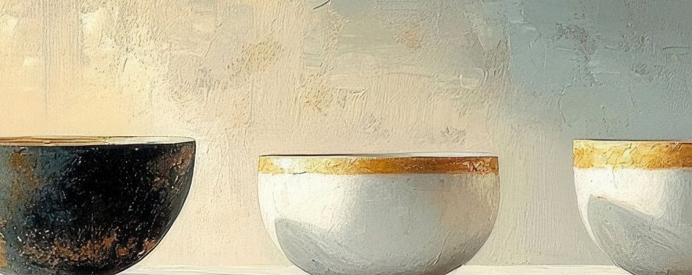 Details: bowls, gold, rustic, still life, texture, earth tones, simplicity, serenity, tranquillity, art