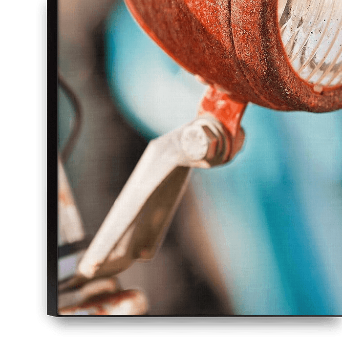 Buy the photo Rusty bicycle headlamp on a sunny day by Tony Vingerhoets on canvas, ArtFrame, poster and wallpaper, printed on demand in high quality.