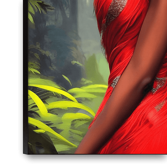 Step into the heart of Africa with 'Safari Queen,' a stunning piece of AI art by Christine aka stine1. Adorned in a vibrant red feather dress, this proud African woman embodies grace, strength, and beauty. The lush jungle greenery background adds to the sense of adventure…