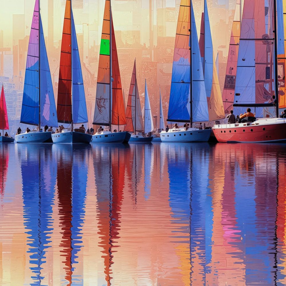In this picture, a maritime motif merges with the aesthetics of digital structures. The work on display stages sailing boats like silhouettes against a colourful sky, while the upper and lower areas of the picture are permeated by pixel architecture and break up the composition. This digital fragmentation creates a tension between natural harmony and technical abstraction and opens up a dialogue between flowing movement and geometric order.