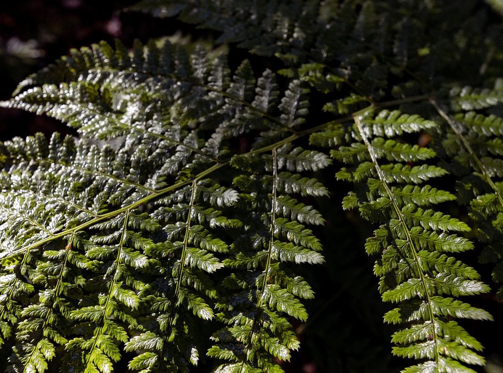 The fern nicely highlighted by the sun. the other half hidden in the shade of the surrounding plantings of the Utrecht landscape on the ridge.