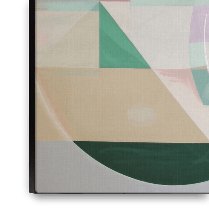 This subtle and elegant geometric composition is characterised by soft pastel shades and overlapping shapes. The combination of circles, triangles and rectangles creates a harmonious and calming atmosphere that is ideal for modern living spaces and offices. The delicate colours and transparent layers give the image a light and airy…