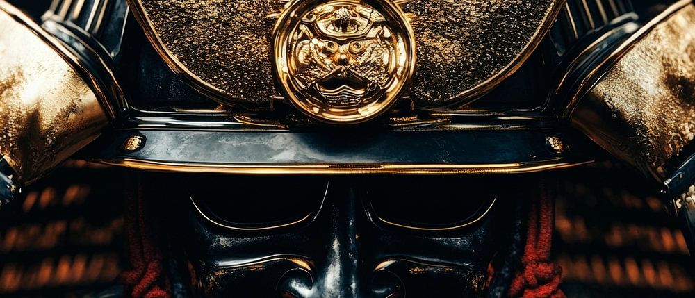 A majestic warrior in magnificent armour rises up before the viewer, his golden decorations radiating strength and tradition. The mixture of darkness and light frames his face, while the imposing horns of the helmet draw the eye. Perfect for a living room, this work of art brings a powerful atmosphere and stimulating conversation.