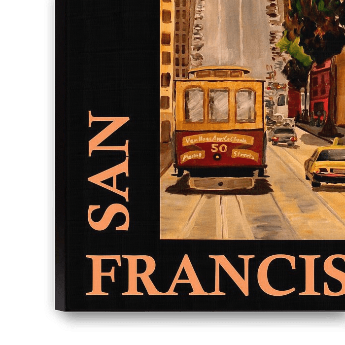 Buy this painting San Francisco California Classic retro poster by Markus Bleichner as a reproduction on canvas, ArtFrame, poster and wallpaper, printed on demand in high quality.