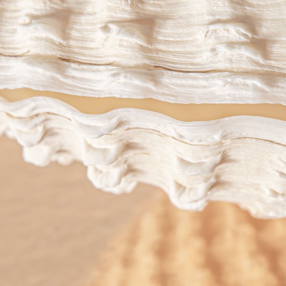 "Sandy pink beach: Shell reflects in the surface " is a photo of a beautiful shell where the top and bottom were still together when I found it on the beach. This shell naturally has a cream - beige-like colour, which I think matches beautifully with the beige - (old) pink surface. Because the ground surface is textured, the reflection makes the shell abstract. It looks like it has been painted into the beige - (old) pink surface.