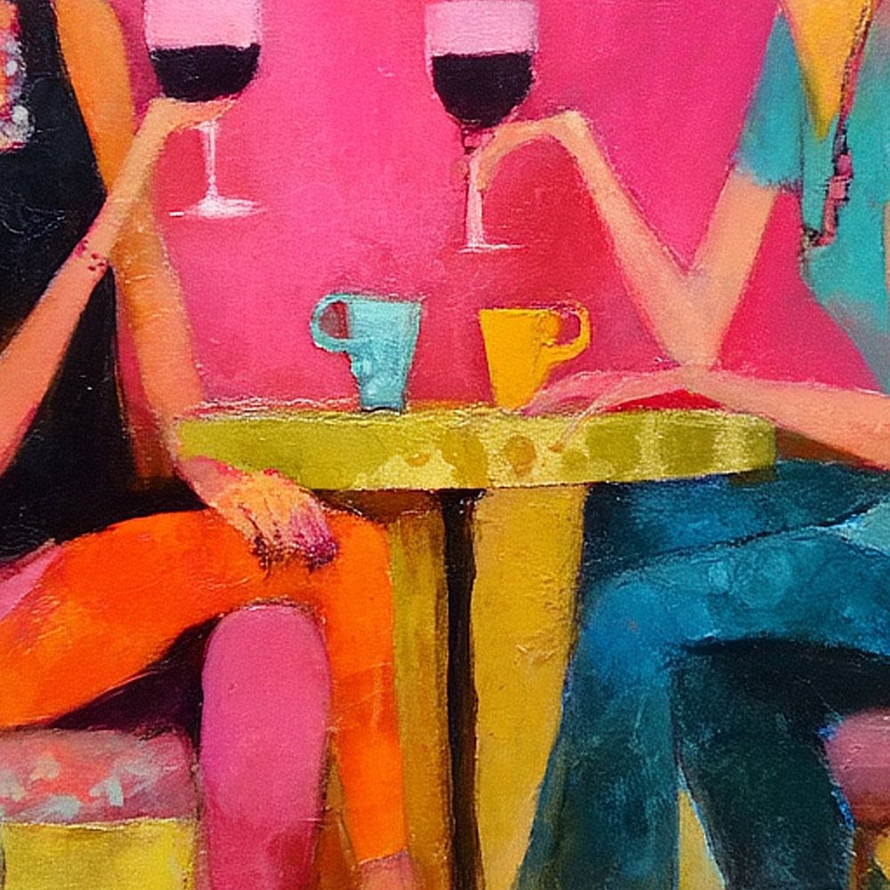 Amitié – Friendship is at the heart of this motif. Joy of life in its most beautiful form: two friends, a glass of wine, a moment of light-heartedness. This work tells of intimate conversations, of laughter filling the room, and of the special warmth of true friendship.