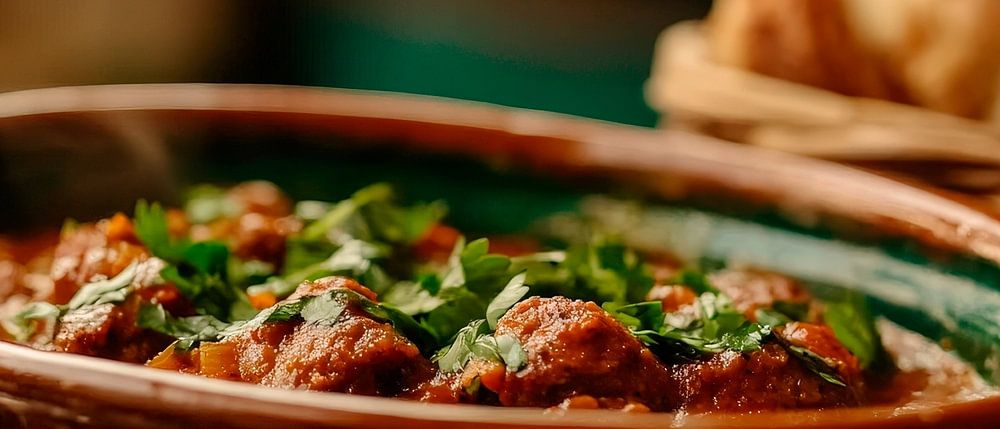 Juicy meatballs in a rustic bowl, surrounded by fresh greenery, invite you to feast. The warm, woody ambience harmonises perfectly with a delicious bread that literally invites you to dip. This exquisite still life adds a touch of cosiness and culinary delight to any kitchen. A feast for the senses!