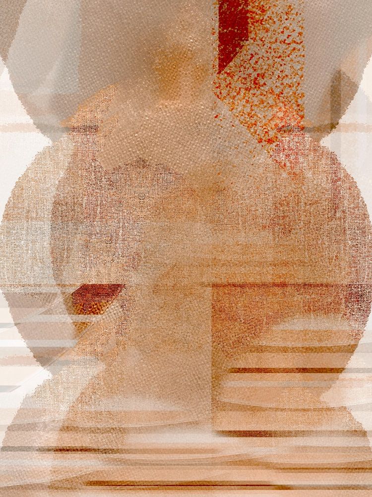 An abstract painting of geometric shapes on warm earthy colors like soft brown , beige, cream, gold, copper, ocher, khaki, ivory, medium brown and others.
