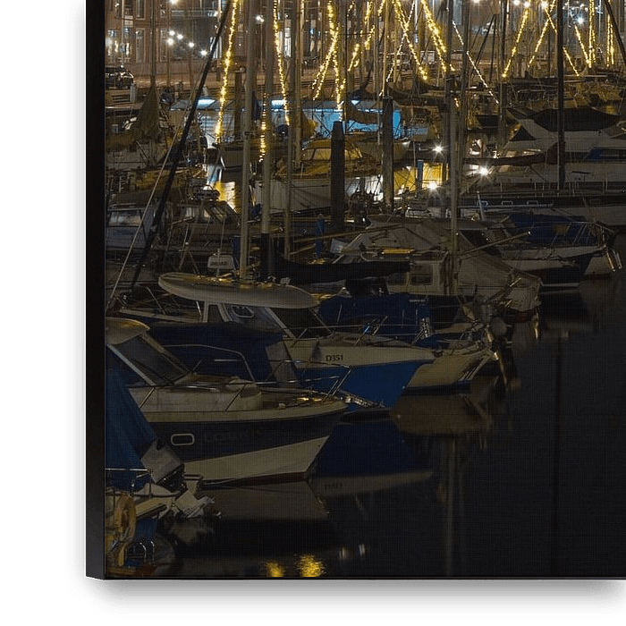 Scheveningen Marina with the holiday season in December. The ships are beautifully lit up.