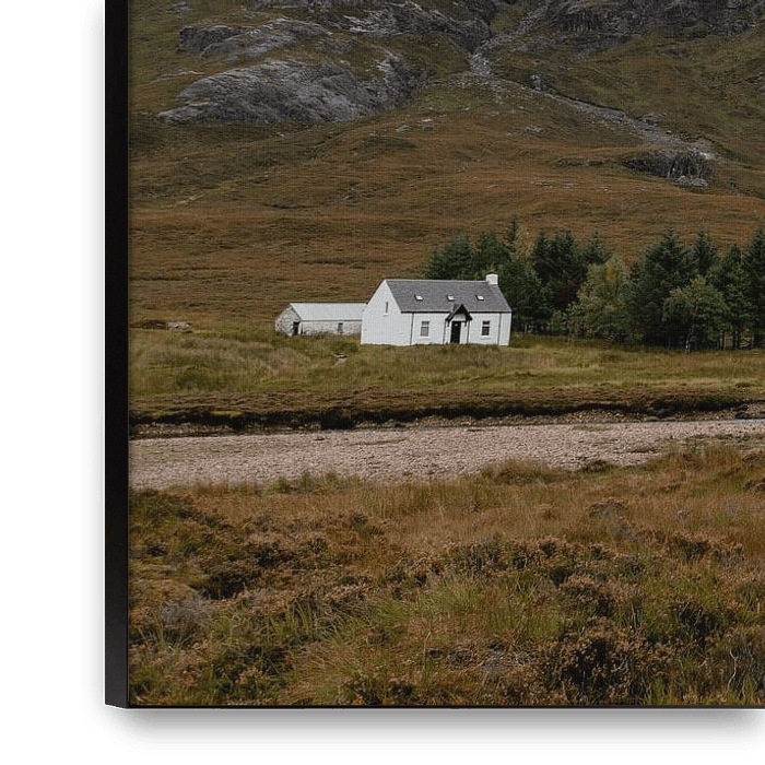 The beautiful mystical surroundings of Glencoe with Scotland's most famous cottage Lagangarbh hut in the picture. The cloud cover adds a wonderful dramatic atmosphere to this already enchanting setting.