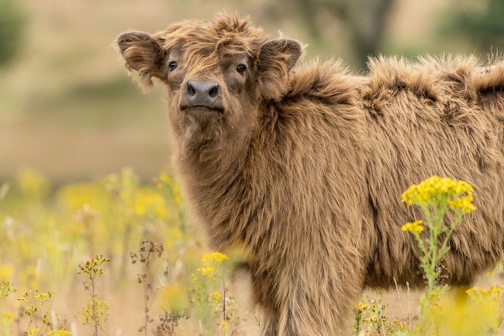 Scottish Highlander calf on the heath. by Albert Beukhof