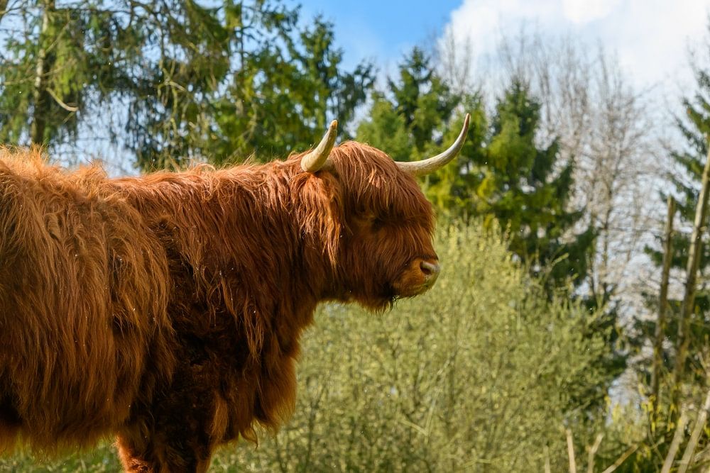 Several Scottish Highlanders graze the Harderbos in Flevoland. The thick fur protects the animal against the weather.