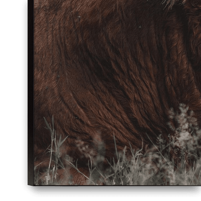Buy this landscape artwork Scottish Highlander in the Veluwe by Erwin Kamp on canvas, ArtFrame, poster and wallpaper, printed on demand in high quality.