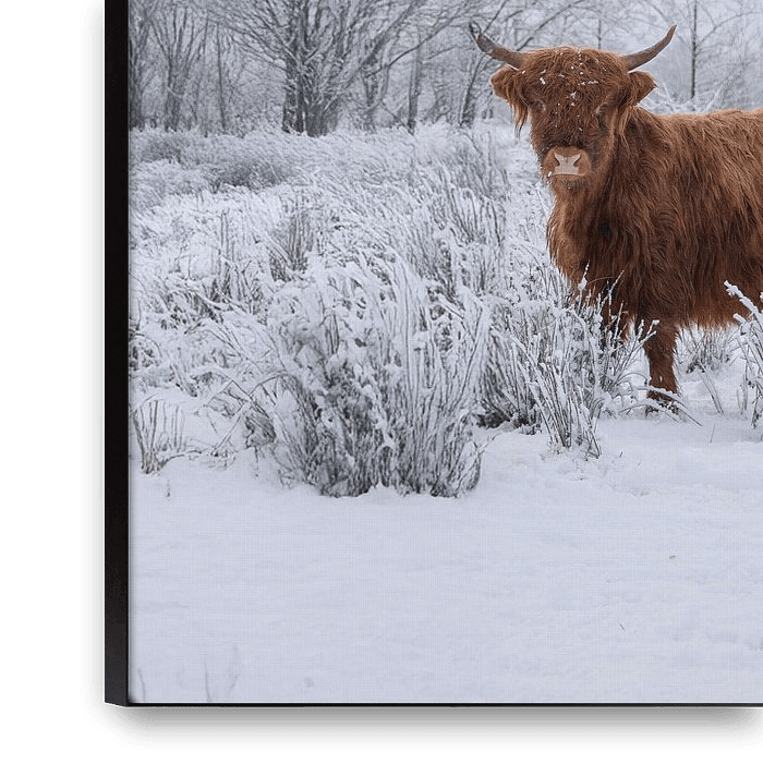 Buy this highland cow art Scottish Highlander in winter landscape by Ans Bastiaanssen on canvas, ArtFrame, poster and wallpaper, printed on demand in high quality.