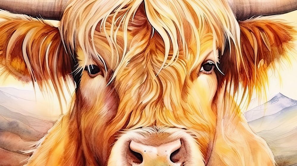 This Scottish Highlander portrait watercolour can be printed on various materials.