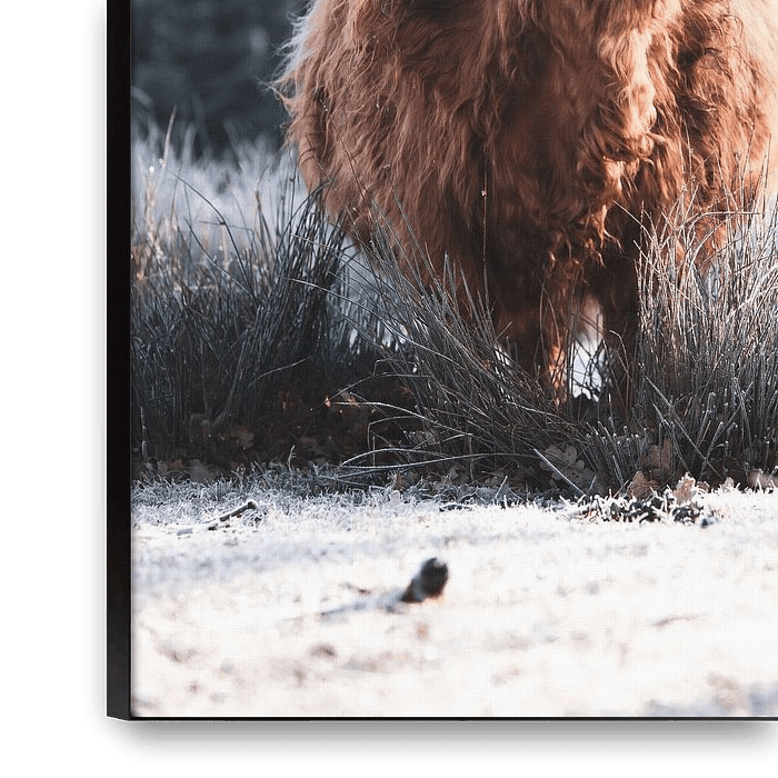 Buy this landscape artwork Scottish Highlander winter by Tineke Oving on canvas, ArtFrame, poster and wallpaper, printed on demand in high quality.